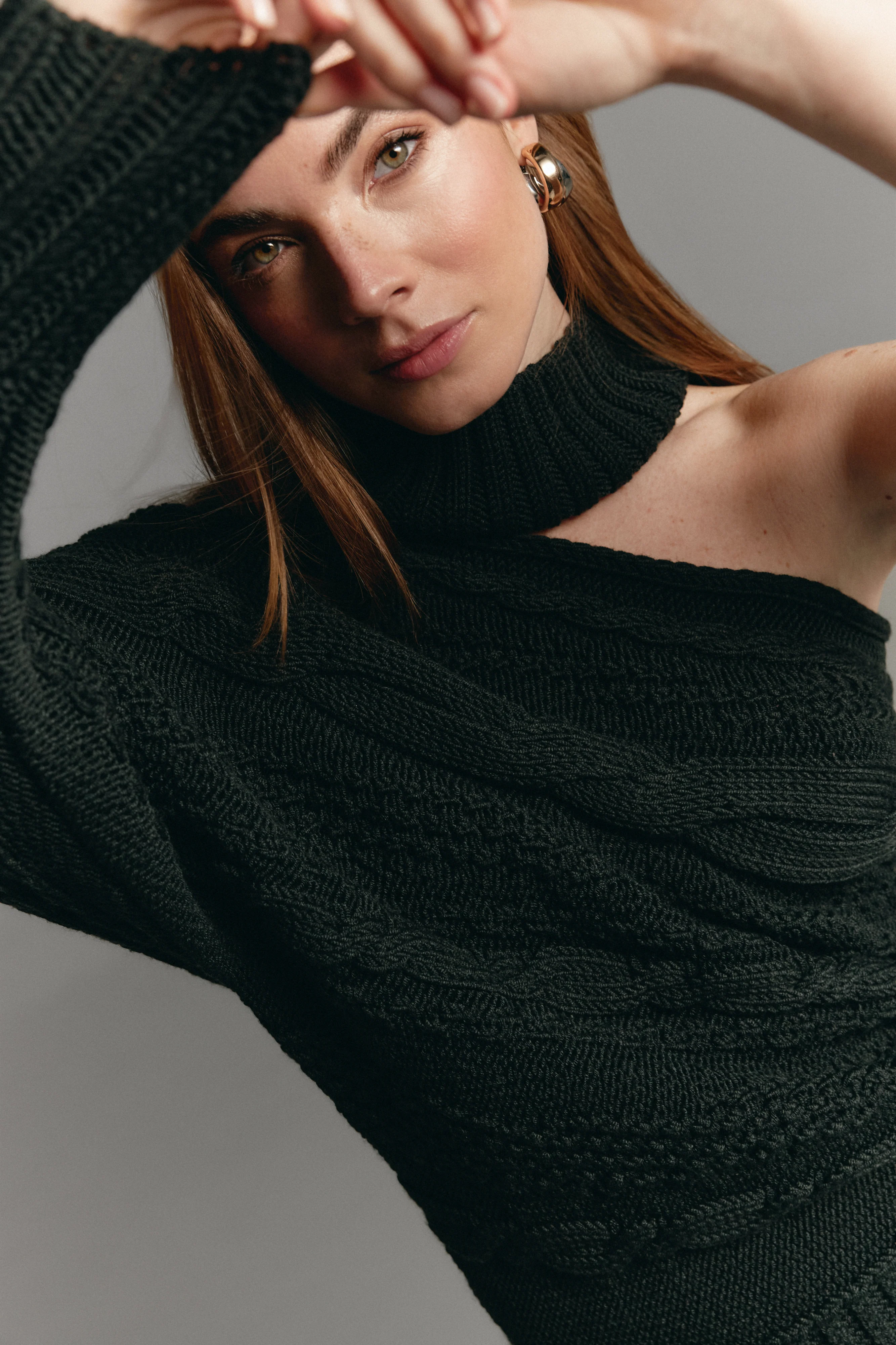 Jersey asimétrico de cuello alto con hilatura italiana de lana merino extrafine. El jersey está fabricado en España en fábricas locales, cuidando los detalles de cada trenza del tejido. Su manga murciélago contrasta con la apertura del hombro siendo una reinvención de nuestro icónico jersey Venice. El cuello alto y los puños en canalé rematan esta prenda pensada para perdurar en el armario, tanto por sus colores elegantes como por la calidad de la lana.
