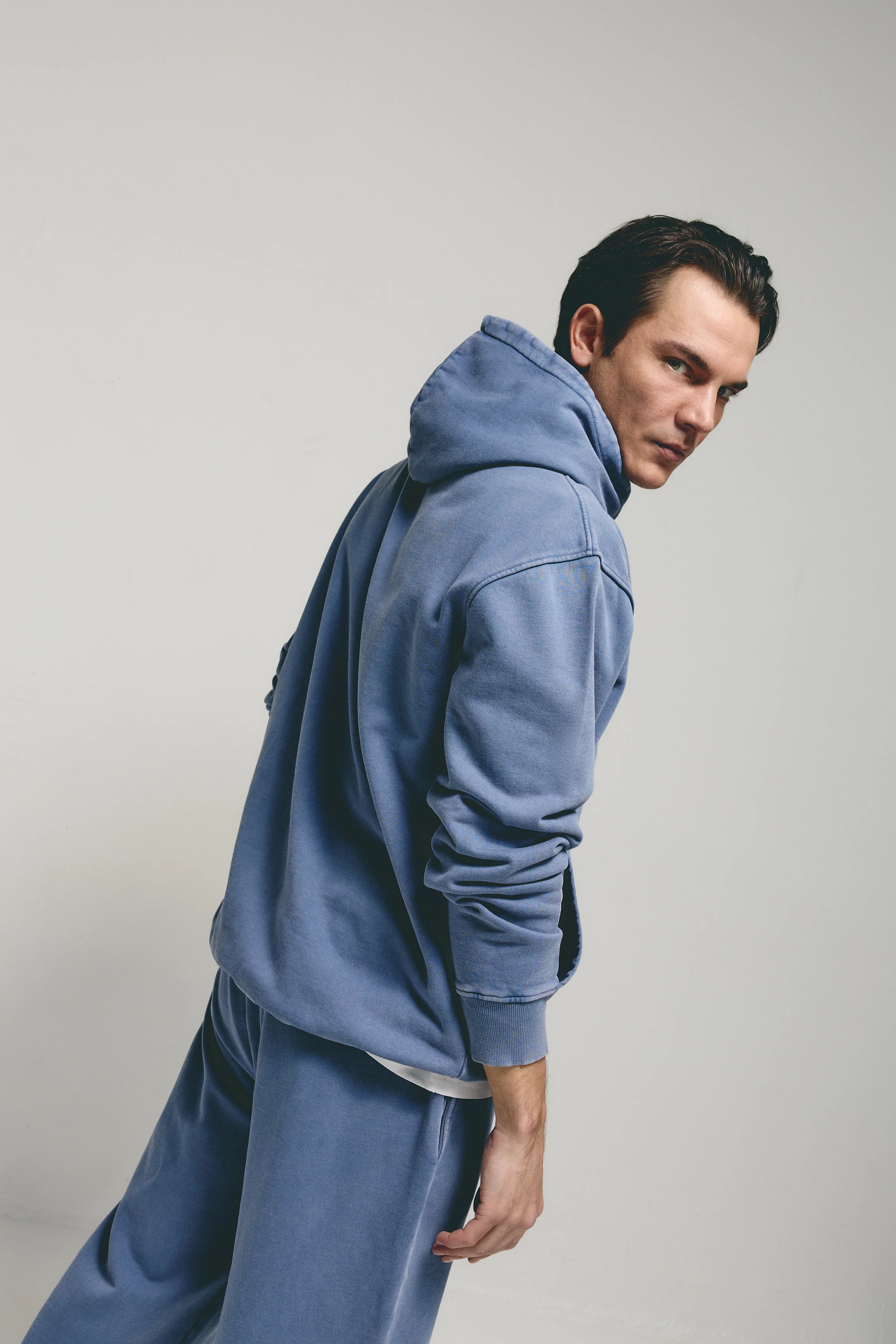 Pantalón inspiración jogger en felpa americana perchada. El pantalón tiene cinturilla y bajo elásticos que se ajustan para una silueta jogger. La prenda ha sido confeccionada mediante el proceso de tinte en prenda, obteniendo colores vibrantes desarrollados para la colección.